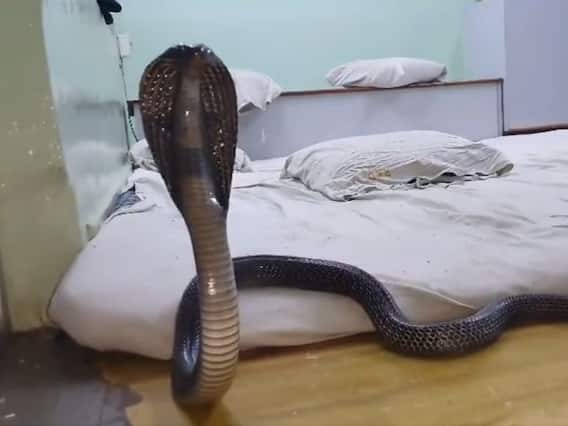 बेड पर फन फैलाये सांप का खतरनाक Video
