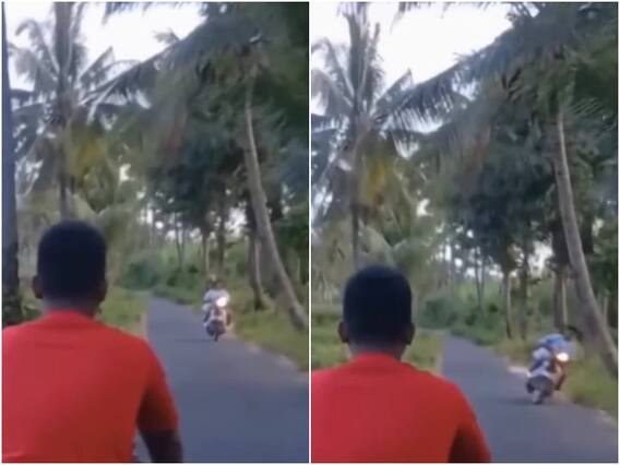 वायरल हो रहे वीडियो में हम एक बाइक सवार को देख सकते हैं, जो की सड़क पर चलते समय सामने से आ रहे वाहनों को फिल्मा रहा है. अचानक एक बाइक सवार उसके पास पहुंचता है, उसी समय सड़क किनारे लगे नारियल के पेड़ से एक नारियल टूटकर नीचे गिरते हुए उसके सिर पर गिर जाता है. जिससे बाइक सवार को चोट लग जाती है और वह नियंत्रण खो देता है और हादसे का शिकार हो जाता है.