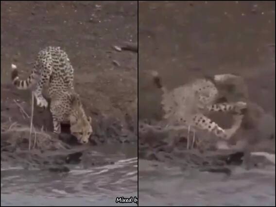 चीते पर जिस तरह से मगरमच्छ ने अचानक हमला करता है उसे देखकर कोई भी परेशान हो जाएगा. इस रोंगटे खड़े कर देने वाले वीडियो को ट्विटर पर शेयर किया गया है. प्यासे चीते को पता ही नहीं चला कि अगले पल उसका सामना उसकी मौत से होने वाला है. इसलिए कहा जाता है कि सावधानी हटी, दुर्घटना घटी. जरा सी चूक और जंगल में बड़े से बड़ा खतरनाक जानवर भी दूसरे जानवर का भोजन बन जाता है.