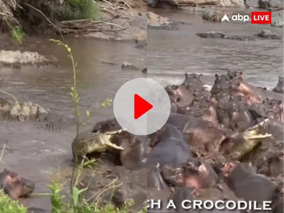 कहते हैं एकता में बल होता है इस वीडियो को देखकर ऐसा ही नजर आ रहा है. इसमें पानी के अंदर बहुत सारे दरियाई घोड़े मिलकर एक मगरमच्छ को पर हमला कर देते हैं. देखते ही देखते सभी दरियाई घोड़े मिलकर मगरमच्छ को किसी गेंद की तरह इधर से उधर उठाकर फेंकने लगते हैं. इस वीडियो में मगरमच्छ बहुत लाचार नजर आ रहा है.