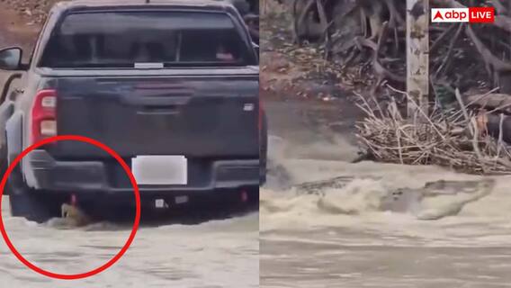 Kakadu National Park News: ऑस्ट्रेलिया के काकाडू नेशनल पार्क में स्थित काहिल्स क्रॉसिंग पर एक हैरान कर देने वाला वीडियो सोशल मीडिया पर वायरल हो रहा है. इस वीडियो में एक बड़ा मगरमच्छ एक वाहन (यूटी) के नीचे फंसा हुआ दिख रहा है. बताया जा रहा है कि वाहन के ड्राइवर को पता ही नहीं था कि उसकी गाड़ी के नीचे पानी में एक मगरमच्छ मौजूद है.