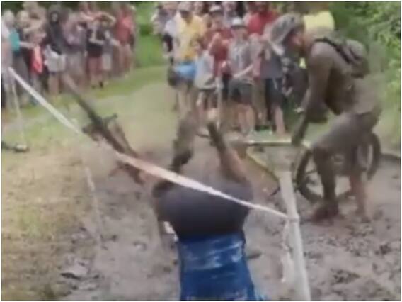दरअसल, वायरल वीडियो किसी साइकिल रेस (Cycle Race Viral Video) का लगता है. ये रेस किसी जंगल में हो रही होती है और ट्रैक पर कीचड़ भी होता है जिसे पार करना होता है. रेसर साइकिल पर उड़ता हुआ आता है और धड़ाम से सिर के बल कीचड़ में गिरता है. आप वीडियो में देख सकते हैं कि साइकिलिस्ट का सिर कीचड़ के अंदर घुस जाता है और वो बाहर निकलते ही मुस्कुराने लगता है.