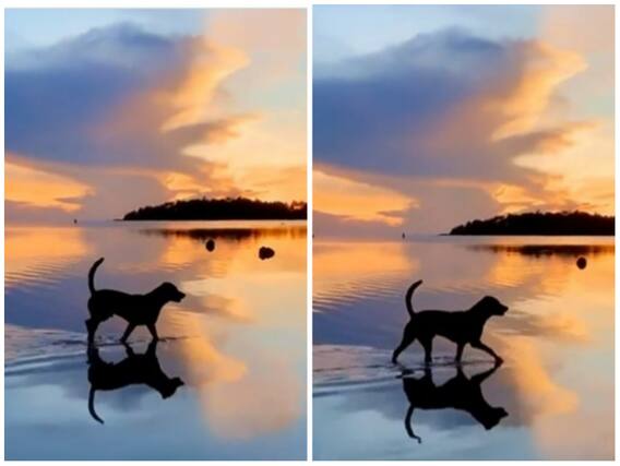 वायरल हो रही एक क्लिप को Buitengbeiden ने ट्विटर पर शेयर किया है. इसमें एक डॉगी को देखा जा रहा है जो की उथले पानी पर चलते नजर आ रहा है. इसके बैकग्राउंड में डूबते सूरज के कारण आसमान पर उभर रहे रंग लोगों की आत्मा को सुकून पहुंचाते नजर आ रहे हैं.