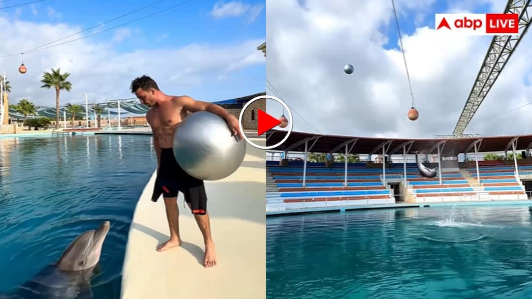 सोशल मीडिया पर इस वक्त एक ऐसा वीडियो वायरल हो रहा है जिसे देखकर फुटबॉल फैंस और एनिमल लवर्स दोनों ही हैरान रह गए हैं. दरअसल पानी की गहराइयों में रहने वाली डॉल्फिन ने अपने स्किल्स से जमीन पर खेले जाने वाले इस खेल में ऐसी एंट्री मारी है कि लोग दंग रह गए हैं. वीडियो में पूल के अंदर तैर रही डॉल्फिन फुटबॉल से ऐसे खेलती नजर आई जैसे कोई प्रोफेशनल खिलाड़ी मैदान में खेल रहा हो. मजेदार बात ये रही कि डॉल्फिन ने फुटबॉल को हवा में छलांग लगाकर इतनी जोरदार किक मारी कि बॉल दूर जा गिरी और लोग ताली बजाने पर मजबूर हो गए.