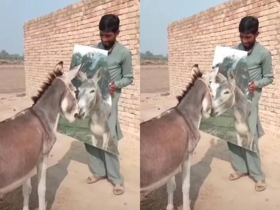 वीडियो में दिखाया गया है कि अपने आप को अचानक से आईने में देखने के बाद गधा हैरान रह जाता है और बेकाबू होकर जोर जोर से आवाजें निकालने लगता है. गधे को जैसे कुछ समझ नहीं आ रहा हो कि वो क्या करे. इस वीडियो को beautiful new pix नाम के इंस्टाग्राम पेज पर शेयर किया गया है, जो धीरे धीरे सोशल मीडिया पर छा रहा है. वीडियो में इस जानवर का रिएक्शन इतना फनी है कि लोग इस वीडियो को लूप में देख रहे हैं. इस वीडियो को देखने के बाद आपके चेहरे पर भी बड़ी स्माइल जरूर आ गई होगी.