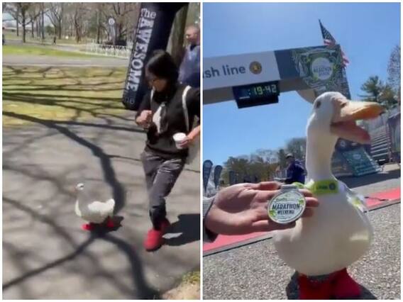 मैराथन पूरा करने के बाद बत्तख को मेडल भी पहनाया जाता है. 26 सेकंड का यह वीडियो सोशल मीडिया पर @Thund3rB0lt नामक एक ट्विटर अकाउंट द्वारा शेयर किया गया है, जिसमें फिनिश लाइन पार करने के बाद एक महिला बत्तख को पानी पिलाते देखी जा रही है. फिलहाल वीडियो ने सोशल मीडिया पर यूजर्स का दिल जीत लिया है.