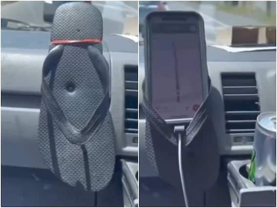 दरअसल आज के समय में कई तरह के गैजेट्स आ गए हैं, जो इंसानों का काम काफी आसान कर रहे हैं. ऐसे में इन गैजेट्स की आदत सी पड़ गई है. कार के अंदर यात्रा के समय मोबाइल को चार्ज करने की सुविधा होती है. फिलहाल कार में मोबाइल को रखने के लिए एक स्टैंड भी होता है. ऐसे में जब एक यात्री को कार के अंदर चार्जिंग के लिए मोबाइल स्टैंड नहीं मिलता है, तो वह अपनी चप्पल को ही कार के डैश बोर्ड से लगाकर उसे स्टैंड की तरह इस्तेमाल में लेता है.