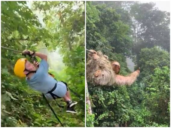 दरअसल पहाड़ों के बीच जिपलाइनिंग, एडवेंचर्स स्पोर्ट में से एक बनता जा रहा है. इसका पूरी आनंद तभी लिया जा सकता है जब बीच में कोई रुकावट न हो. सोशल मीडिया पर एक वीडियो तेजी से वायरल हो रहा है, जिसमें जिपलाइन के तार पर लटके एक स्लॉथ को देखा जा रहा है. जिस कारण जिपलाइन का आनंद ले रहे लोग कुछ समय के लिए रुके हुए दिखाई दे रहे हैं.