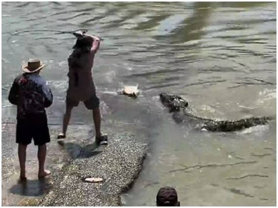 विदेशों में ज्यादातर लोग मछली पकड़ने का शौक रखते हैं. जिसे पूरा करने के लिए वह जंगलों में जाकर नदी या फिर तालाब किनारे घंटों बैठकर मछली पकड़ते नजर आते हैं. फिलहाल सामने आया वीडियो ऑस्ट्रेलिया के काकाडू में चेल्स क्रॉसिंग की झील का बताया जा रहा है. जहां फिशिंग के दौरान एक मगरमच्छ को मछुआरे के सामने आते देखा गया है.