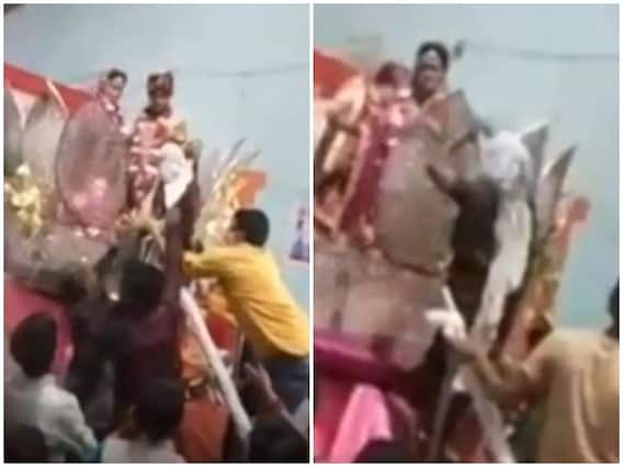 दरअसल यहां उमेशचंद्र नाम के युवक ने पड़ोस में रहने वाली लड़की से कोर्ट मैरिज कर ली. अंतरजातीय विवाह होने की वजह से दोनों के घर वाले नहीं माने, अंत में लड़की के घर वालों ने धूमधाम से शादी की इच्छा जताई. लड़के वाले इस शादी के खिलाफ थे, न्योता नहीं मिलने के बावजूद वरमाला के बाद दूल्हे की मां स्टेज पर पहुंची और बेटे पर चप्पलों की बौछार कर दी. सोशल मीडिया पर ये वीडियो काफी तेजी से वायरल हो रहा है.