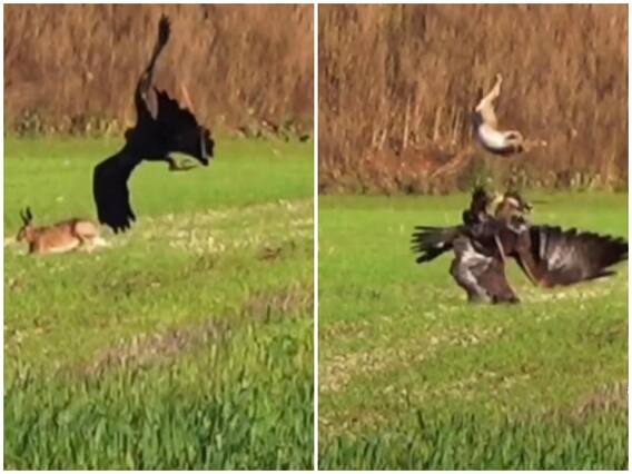 वायरल हो रहे इस वीडियो में देख सकते हैं कि किस तरह एक बाज हवा में उड़ान भरता हुआ, जमीन पर मौजूद हिरण को दबोचने की कोशिश करता है, लेकिन जैसे ही उसने उड़ान भरने की कोशिश की हिरण ने खेला कर दिया.