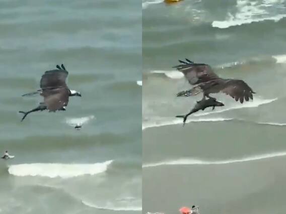 Shark Eagle Viral Video: शार्क कितना खूंखार और खतरनाक होता है, यह तो आपने बीते दिनों सोशल मीडिया पर वायरल हुई मिस्र की एक वीडियो में देख लिया होगा. जिसमें एक रूसी शख्स को टाइगर शार्क जिंदा चबा गया. इस वीडियो ने सभी के रोंगटे खड़े कर दिए थे. अब इंटरनेट पर ऐसा ही एक और वीडियो वायरल हो रहा है, जिसमें एक पक्षी ने शार्क अपना निशाना बनाया है. बेशक यह सुनने में आपको अटपटा लग रहा होगा, लेकिन यह सच है कि आसमान में उड़ते एक पक्षी ने समंदर में तैर रहे शार्क पर अटैक कर दिया.