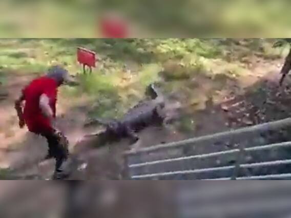 इन दिनों ट्विटर पर एक वीडियो छाया हुआ है, जिसे देखकर हर कोई लोटपोट हो रहा है. खूंखार जानवरों को इंसानों पर हमला करने के बारे में तो आपने कई बार सुना होगा, लेकिन आज जो आप देखेंगे, उसपर बिल्कुल यकीन नहीं कर पाएंगे. ट्विटर पर वायरल वीडियो में एक बुजुर्ग व्यक्ति ने मगरमच्छ को गजब का मजा चखाया है. दरअसल बुजुर्ग व्यक्ति ने अपने गार्डन में एक मगरमच्छ को घूमते पाया. फिर उसे भगाने के लिए उन्होंने ऐसी तरकीब अपनाई, जिसके बाद मगरमच्छ को अपनी बची-खुची इज्जत बचाकर भागना पड़ा.