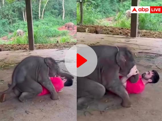 वीडियो में आपने देखा कि जंबो एक आदमी को गेल लगाते समय उसके ऊपर चढ़ा जा रहा है, जबकि आदमी को जमीन पर गिरा हुआ देखा जा सकता है. वह हाथी को प्यार से अपने से दूर करने की कोशिश करते और उसके साथ खेलने की कोशिश करता है, लेकिन उसका बोझ वो बरदाश नहीं कर पा रहा था. हालाँकि, हाथी का बच्चा इस दौरान बेहद खुश नजर आता है.