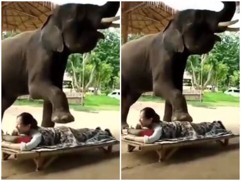 महिला की मसाज कर रहे इस हाथी का वीडियो सोशल मीडिया पर हो रहा है वायरल, आप भी देखें