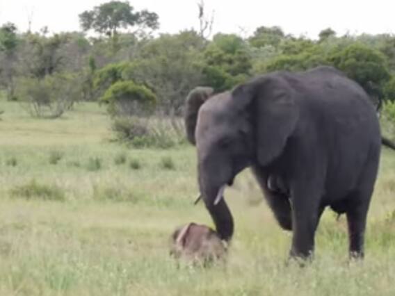 Elephant Tries to Get Newborn to Stand : एक यूट्यूब वीडियो ने लोगों को हैरान कर दिया है, जिसमें एक हाथी मां (हाथिनी) अपने नवजात बच्चे को खड़ा होना सिखाते हुए संघर्ष कर रही है. यह वीडियो दिल को छू जाने वाली है. इस वीडियो में एक मां के संघर्ष को दिखाया है. इस वीडियो को एक बार जरूर देखना चाहिए.
