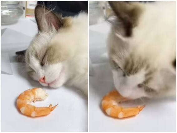 दरअसल वायरल हो रही क्लिप में एक बिल्ली को देखा जा सकता है, जो कि सो रही होती है. तभी उसकी मालकिन उसकी नाक के सामने एक प्रॉन (झींगा मछली) को रख देती है. सो रही बिल्ली पास में रखी झींगा मछली की महक को सांस लेने के कारण महसूस करती है. जिसके बाद उसके मन में लालच आने लगता है.