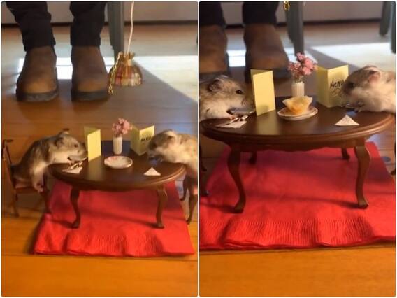 वायरल हो रही इस वीडियो को सोशल मीडिया के कई प्लेटफॉर्म पर पोस्ट किया गया है. इसे ट्विटर पर @ViralHog नाम के अकाउंट से शेयर किया गया है. इस वीडियो में एक रेस्टोरेंट के अंदर कपल को डाइनिंग टेबल पर खाना खाते नजर आ रहा है. इसी दौरान उस डाइनिंग टेबल के नीचे का नजारा सभी को हैरत में डाल रहा है. जिसमें एक छोटी डाइनिंग टेबल पर चूहों को देखा जा रहा है. जिनके लिए एक रेस्टोरेंट सेटअप को तैयार किया गया है.