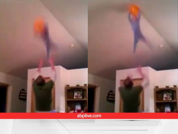 वायरल हो रहे इस रोमांच से भरे वीडियो में आपने देखा कि सीलिंग पर एक गुब्बारा जाकर अटक जाता है, तब एक पिता को एक खरनाक आइडिया सूझता है, जिसे हमारे ख्याल से किसी को भी नहीं आजमाना चाहिए. खैर, वीडियो में आगे आप देख सकते हैं कि ये पिता अपने मासूम बच्चे को तेज़ी से सीलिंग के तरह उछालता है. मजे की बात ये है कि ये बच्चा ऊपर जाते ही बैलून को लपक लेता है. बच्चा जैसे ही नीचे आता है, उसका पिता उसका पकड़ लेता है.