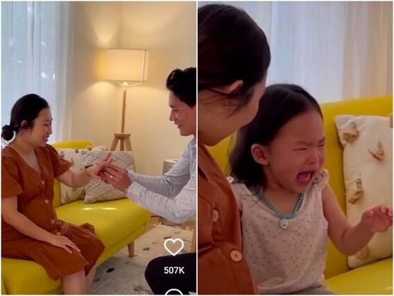 Trending Video: बच्चे बहुत मासूम होते हैं और कभी-कभी, इनके माता-पिता को भी पता नहीं होता है कि उनका मूड कब और किस बात पर बिगड़ जाएगा. ऐसा ही एक वीडियो एक छोटी बच्ची का भी सामने आया है जो अपने पिता को, अपनी माँ को एक अंगूठी गिफ्ट में देता देख रोने लगती है क्योंकि उसे लगता है कि उसको कोई प्यार नहीं करता है. बच्ची के इस क्यूट रिएक्शन को देखकर आप भी हंसने लगेंगे.