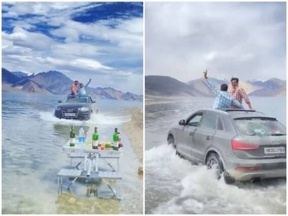 वायरल हो रही क्लिप में तीन लोगों को एक ऑडी में पैंगोंग झील से गुजरते हुए देखा जा रहा है. वहीं झील पर शराब की बोतलों के साथ एक फोल्डेबल टेबल और कुर्सी भी देख सकते हैं. फिलहाल इस बात की पुष्टि नहीं हो पाई है कि यह वीडियो लद्दाख में शूट किया गया है. लेकिन पर्यटन स्थल पर पर्यटकों की यह एक लापरवाह रवैया है. वहीं वायरल हो रहे वीडियो के साथ यूजर्स को काफी गुस्से में इन पर्यटकों के खिलाफ कार्रवाई की मांग हो रही है.