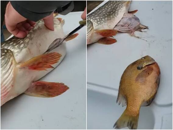Miraculous Rescue Viral Video: सोशल मीडिया पर इन दिनों हमें कई ऐसी चीजें देखने को मिल ही जाती है. जिसे देख हर किसी को होश उड़ जाते हैं. हाल ही में एक ऐसा ही वीडियो सामने आया है. जिसमें एक मछली के पेट को चीर कर दूसरी मछली को निकलते देखा गया. इसमें भी हैरानी वाली बात यह रही की पेट के अंदर से निकली मछली जिंदा थी. जिसे की बड़ी मछली ने शिकार बना कर खा लिया था.
