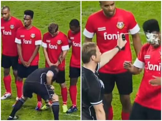 कुछ प्लेयरों को एक साथ लाइन में खड़े हो जाते हैं. उनके लिए बाउंड्री तय करने के लिए जैसे ही एक रेफरी आगे आता है और स्प्रे से झाग निकालते हुए एक लाइन खींचता है तो एक प्लेयर के जूते के ऊपर भी झाग को गिरा देता है. जिसके कारण खिलाड़ी काफी नाराज हो जाता है.