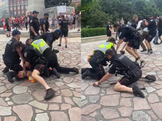 Canada Trending: 30 जून को कनाडा के ओटावा (Ottawa) में पुलिस (Police) और कुछ प्रदर्शनकारियों (Protestors) के बीच टकराव देखने को मिला. राष्ट्रीय युद्ध स्मारक (National War Memorial Canada) के सामने पुलिस अधिकारियों और नागरिकों के बीच तनाव की स्थिति बन गई. दरअसल, ये लोग कोरोना वैक्सीन को लेकर सरकार के फैसले का विरोध कर रहे थे. इस दौरान ये टकराव की स्थिति पैदा हुई.