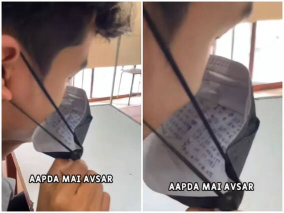 Trending News: दुनियाभर में कोरोना वायरस ने नाक में दम कर रखा है. ऐसे में कई बड़े-बड़े शिक्षण संस्थानों को बंद कर दिया गया है. वहीं कई जगह परिक्षाएं ली जा रही हैं. ऐसे में वह छात्र जो परीक्षा से बचने की कोशिश कर रहे थे उन्होंने नकल का नया तरीका इजाद कर लिया है. दरअसल हाल ही में एक वीडियो तेजी से वायरल होता देखा गया है. जिसमें एक छात्र को कोरोना से बचाव के लिए पहने जा रहे मास्क के अंदर नकल को रखे देखा गया है.