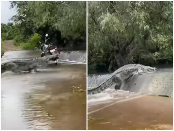 यूजर्स अनुमान लगाकर ही कांप जा रहे हैं कि अगर बाइक के साथ कोई शख्स वहां होते तो मगरमच्छ उसके साथ क्या कर सकता था. वीडियो में दिखाई दे रहे मगरमच्छ की स्पीड बिजली से कम नहीं दिख रही है. फिलहाल वीडियो में मगरमच्छ किसी को नुकसान पहुंचाए बिना ही शांति से नदी के अंदर डुबकी लगाकर गायब हो जाता है. खबर लिखे जाने तक वीडियो को सोशल मीडिया पर लाखों व्यूज मिल गए हैं.