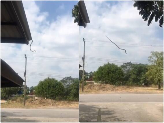 वायरल हो रही यह वीडियो सोशल मीडिया के कई प्लेटफॉर्म पर पोस्ट हो रही है. इस वीडियो को ट्विटर पर आईएएस अधिकारी सुप्रिया साहू ने अपने ऑफिशियल अकाउंट से शेयर किया है. इस वीडियो में सड़क किनारे बना एक घर की छत पर एक लंबे सांप को देखा जा रहा है. जो छत से उतरने की कोशिश कर रहा है. जब उसे कोई रास्ता नहीं मिलता है तो वह हवा में ही छलांग लगा देता है.