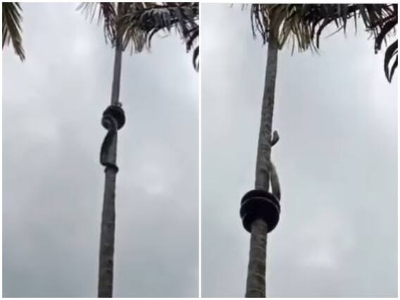 सोशल मीडिया पर सामने आए वीडियो में देखा जा रहा है कि एक सांप कुंडली मार कर पेड़ पर चढ़ाई कर रहा है. जिसे देख हर कोई दंग रह गया है. वीडियो में देखा जा सकता है कि नारियल के पेड़ पर ऊपर की ओर जा रहा सांप बड़ी ही चतुराई से अपने शरीर को पेड़ पर कस कर लपेट लेता है. जिसके बाद वह धीरे-धीरे खुद को ऊपर ले जाता नजर आ रहा है.