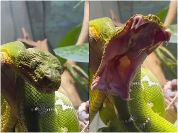 Snake Yawn Viral Video: सोशल मीडिया पर कब कौन सा वीडियो वायरल हो जाए, इस बात का अंदाजा लगा पाना बेहद मुश्किल होता है. इन दिनों यूजर्स को कुछ हैरतअंगेज और रोमांच से भरे वीडियो बेहद पसंद आ रहे हैं. हाल ही में एक ऐसा ही वीडियो सोशल मीडिया पर सामने आया है, जिसमें काफी खतरनाक सांप को देखा जा रहा है. जिसकी हरकत को देख यूजर्स की आंखें खुली की खुली रह गई हैं.