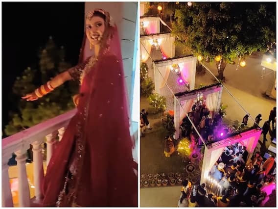 Bride Viral Dance Video: सोशल मीडिया पर शादी से जुड़े वायरल वीडियो की भरमार है. कभी दुल्हन का डांस लोगों का दिल जीत लेता है तो कभी दूल्हे के अलग अंदाज के लोग दीवाने हो जाते है. शादी की खुशी में दूल्हा- दुल्हन कई बार ऐसी हरकत कर देते हैं जिसका वीडियो वायरल हो जाता है. आमतौर पर शादी में दूल्हा-दुल्हन का डांस सबसे ज्यादा लोगों का ध्यान खींचता है. कुछ दिनों से ऐसा ही एक वीडियो सोशल मीडिया पर काफी वायरल हो रहा है. अमूमन दुल्हन के एंट्री डांस का वीडियो वायरल होता है लेकिन इस बार दुल्हन का छत पर नाचने का वीडियो लोगों को काफी पसंद आ रहा है. बारात को देखकर खुशी से दुल्हन के डांस करने को लोग खूब देख रहे हैं.