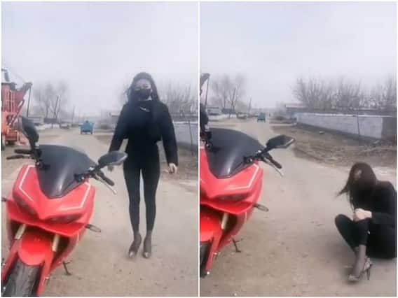 दरअसल स्टंट करते समय या फिर हवाबाजी दिखाने के चक्कर में कई बार कुछ लोग गलती कर बैठते हैं. वहीं उनकी यह गलतियां उन्हें हंसी का पात्र बना देती हैं. ऐसे में सोशल मीडिया पर सामने आए वीडियो में भी हमें ऐसा ही नजारा देखने को मिल रहा है. जिसे देख यूजर्स अपनी हंसी कंट्रोल ही नहीं कर पा रहे हैं. वीडियो में एक लड़की को स्पोर्ट्स बाइक के सामने कूल बनते हुए हवाबाजी करते देखा जा रहा है.