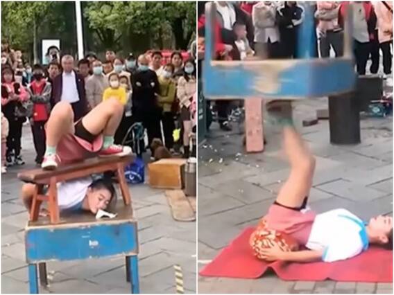 वीडियो को सोशल मीडिया के कई प्लेटफॉर्म पर यूजर्स लगातार शेयर कर रहे हैं. फेसबुक पर इस वीडियो को MetDaan Fitness नाम के अकाउंट से पोस्ट किया गया है. वीडियो में पहले लड़की को दो छोटी मेज़ों पर खड़े होकर करतब करते नजर आ रही है. जिसके बाद वह जमीन पर लेट कर एक मेज को अपने पैरों पर रखकर तेजी से चलाते दिख रही है. जिसे देख यूजर्स की आंखें खुली की खुली रह गई हैं.