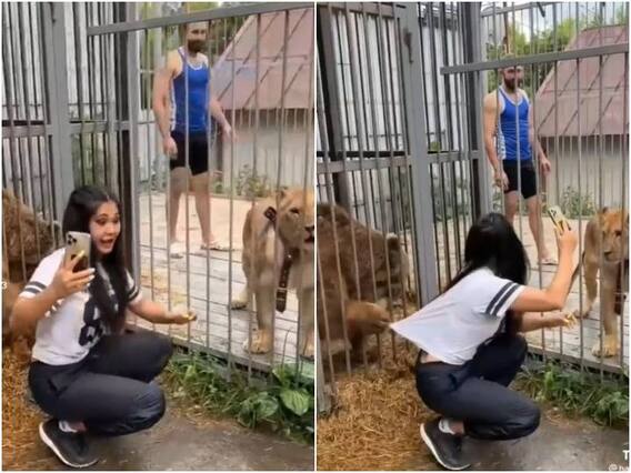 फिलहाल सेल्फी लेने के दौरान एक बड़ा हादसा होने से उस वक्त रह गया. जब लड़की को खूंखार शेरनी और विशालकाय भालू के पिंजड़े के आगे सेल्फी लेते देखा गया. वाइल्ड लाइफ एनिमल्स के साथ हर कोई तस्वीर लेना चाहता है. वहीं एक तस्वीर लेना कई बार इंसान की जिंदगी पर भारी पड़ सकता है. ऐसा ही नजारा वीडियो में देखने को मिला, जब सेल्फी लेते वक्त लड़की भालू के पिंजड़े के ज्यादा ही करीब पहुंच गई.