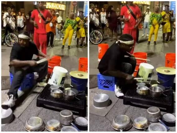 हाल ही में सोशल मीडिया पर एक ऐसा ही वीडियो सामने आया है, इसमें एक शख्स अपनी आर्ट का नमूना पेश करते दिख रहा है. यह स्ट्रीट आर्टिस्ट सड़क किनारे बैठ कर लोगों को हैरतअंगेज अंदाज में म्यूजिक सुनाते देखा जा रहा है. वीडियो में शख्स अपनी क्रिएटिविटी का अनोखा रूप दिखा रहा है. इस दौरान वह बर्तन और डिब्बों को ड्रम की तरह बजाते देखा जा रहा है.