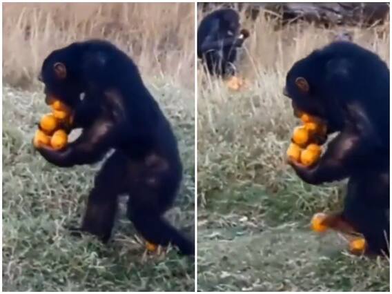 दरअसल सोशल मीडिया पर वायरल हो रहे वीडियो में एक चिम्पैंजी को अपने दोनों पैरों पर चलते देखा जा सकता है. उसका इस तरह चलना कोई खास बात नहीं, खास इसमें यह है कि वह अपने दोनों हाथों समेत पैरों की अंगुलियों पर और साथ ही मुंह में फल को दबाए भागता दिख रहा है.