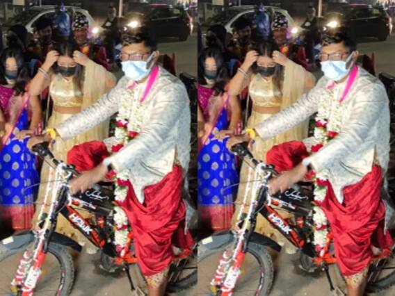 Trending Wedding: शादी हर किसी के लिए बेहद स्पेशल होती है. हर कोई अपनी शादी के लिए खास प्लानिंग और सपने संजो कर रखता है. शादियों से जुड़ी तमाम तस्वीरें और वीडियो सोशल मीडिया पर खूब वायरल रहते हैं. हालांकि अभी तक आपने सबसे ज्यादा बिग बजट और हाई प्रोफाइल डेस्टिनेशन के एक से एक शानदार फोटोशूट्स देखे होंगे लेकिन आज हम आपको एक ऐसी शादी के बारे में बताने जा रहे हैं जहां दूल्हा अपनी शादी को यादगार बनाने के लिए साइकिल से दुल्हनिया को लेने के लिए निकल पड़ा.