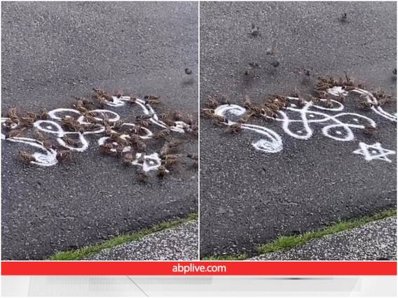 हाल ही में सामने आई एक वीडियो में सड़क पर रंगोली को बना हुआ देखा जा रहा है. जिसे पक्षियों का झुंड घेरकर उसे चुगते देखा जा रहा है. जिसे देख हर किसी को काफी हैरानी हो रही है. दरअसल देश के कई स्थानों पर लोगों को रोजाना रंगोली बनाते देखा जाता है. जिसे आमतौर पर पक्षी नहीं खाते हैं. वहीं खाने वाली रंगोली को देख हर कोई हैरत में पड़ गया है.