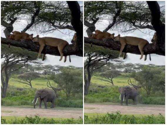 वीडियो में एक हाथी को भी जंगल के एक छोर से निकलते देखा जा रहा है. ये देख यूजर्स काफी उत्सुक हो जाते हैं फिलहाल यह हाथी पेड़ पर सो रहे शेरों को डिस्टर्ब नहीं करता, तो वहीं शेर अपने सोने के कार्यक्रम को जारी रखते देखे जा रहे हैं.