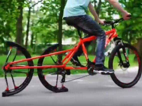 Half Wheel Bycycle Video: दुनिया चांद तक पहुंच गई है. तकनीक (Technology) तेजी से आग बढ़ रही है. विज्ञान (Science) नई ऊंचाइयों को छू रहा है और आए दिन हमारी जिंदगी क्रिएटिव होती जा रही है. नई तकनीकों से हम पूरी तरह से घिर चुके हैं. हालांकि, कई बार कुछ ऐसे क्रिएशन भी सामने आते हैं, जिसे देख आंखें फटी की फटी रह जाती है.