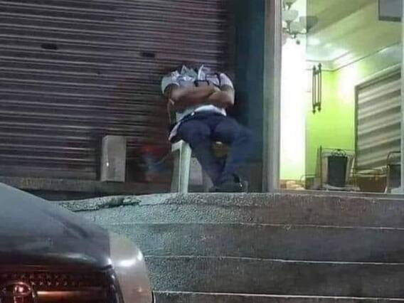 वायरल तस्वीर में आप देख सकते हैं कि सिक्योरिटी गार्ड किसी दुकान या अपार्टमेंट की रखवाली कर रहा है. रात का वक्त है और वो कुर्सी पर आराम से हाथ पर हाथ धरकर बैठा है. इस पूरी तस्वीर में सबसे खौफनाक बात यही रही कि सिक्योरिटी गार्ड का सिर कहीं नजर नहीं आया. अगर गार्ड ने सिर टिकाया भी होगा, तो भी थोड़ा बहुत हिस्सा नजर आना चाहिए, लेकिन इस तस्वीर में तो जैसे सिर का एक भी नामोनिशान नहीं दिख रहा है. अब आप सोच रहे होंगे कि भई इस सिक्योरिटी गार्ड का सिर आखिर गया कहां? कहीं ये कोई भूत तो नहीं? कई लोगों ने भी इस तरह के सवाल किए हैं.