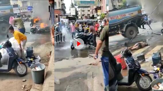 दरअसल, सोशल मीडिया पर वायरल हो रहे एक वीडियो में देखा जा सकता है कि कैसे एक बाइक सवार की गाड़ी से पहले धुआं निकलने लगता है. बाइक से धुआं निकलता देख वहां मौजूद लोग बाइक पर पानी डालने लगते हैं. ऐसे में बाइक सवार भी अपनी बाइक को पास से देखने की कोशिश करता है कि आखिर धुआं निकल कहां से रहा है. जैसे ही वो बाइक को नजदीक से देखने लगता है, बाइक में अचानक धमाका होता है और बाइक धूं धूं कर जलने लगती है. इस दुर्घटना में बाइक सवार भी बुरी तरह से आग की चपेट में आ जाता है. ऐसे में उस इलाके में अफरा तफरी का माहौल हो जाता है और लोग बाल्टी भर भरकर बाइक पर और उस शख्स पर पानी डालने लगते हैं. इससे पहले भी ऐसे कई सारे वीडियो सोशल मीडिया पर वायरल हो चुके हैं जहां गर्मी की मार ना झेलने के कारण वाहनों में आग लग जाती है, और कई लोग तो इसमें जिंदा भी जल जाते हैं. इसलिए गर्मियों में इन सब चीजों से सावधान रहने की सभी को जरूरत है.