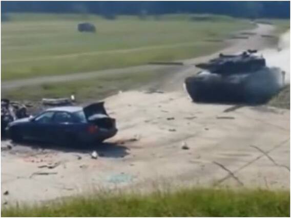 वायरल हो रहे इस हैरतअंगेज वीडियो को हर कोई सोशल मीडिया के कई प्लेटफॉर्म पर पोस्ट कर रहा है. इस वीडियो को ट्विटर पर @historyinmemes नाम के अकाउंट से शेयर किया गया है. इस वीडियो में फील्ड में एक टैंक को दीर से फुल स्पीड में आते देखा जा रहा है, जिस दौरान वह अपने सामने खड़ी कार के ऊपर से पलक झपकते ही निकल जाता है. जिसके बाद कार के पूर्जे अलग बिखरे पड़े नजर आ रहे हैं.