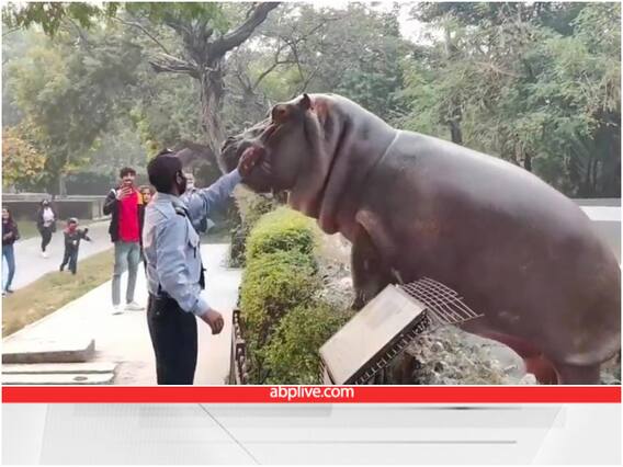 एक चिड़ियाघर का वीडियो इन दिनों काफी ट्रेंड कर रहा है, जो दिलचस्प होने के साथ ही साथ थोड़ा भयानक भी है. वीडियो किसी चिड़ियाघर में कैप्चर किया गया है, जो विजीटर्स से भरा हुआ है. वहीं एक हिप्पो को अपने बाड़े से बाहर झांकते हुए देखा जा सकता है. ये हिप्पो काफी हद तक बाहर आ भी जाता है, तभी वहां मौजूद सुरक्षा गार्ड उसको अपने बाड़े में वापस जाने को कहता है, लेकिन जब हिप्पो नहीं सुनता है, तब गार्ड उसे पीछे थोड़ा धकेलता भी है. इस दौरान हिप्पो अपना पूरा मुंह भी खोलता नजर आता है, जो यूजर्स को थोड़ा परेशान भी कर देता है.