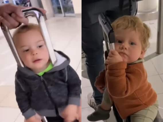 सोशल मीडिया पर कुछ वीडियो वायरल हो रहे हैं, जिसमें बच्चों की गोद लेने की जिद से निपटने का एक अनोखा तरीका बताया गया है. यह तरीका इतना मजेदार है कि बच्चा रोएगा भी नहीं और गोद में लेने की जिद भी नहीं करेगा. वीडियो को 'बेबी एयरपोर्ट हैक' कैप्शन के साथ पोस्ट किया गया है. इन वीडियोज़ में बच्चे को सूटकेस के हैंडल में फंसाकर बैठाया गया है.