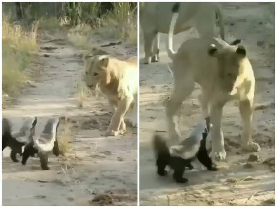 दरअसल वायरल हो रही वीडियो में हनी बैजर को देखा जा रहा है. जिसकी शरीर बनावट में काफी छोटा होती है. वीडियो में शेरों के एक झुंड को दो हनी बैजर पर हमला करते देखा जा रहा है. इस दौरान किसी दूसरे जानवर की तरह डर कर भागने की बजाए हनी बैजर शेर का डटकर सामना करते हैं.