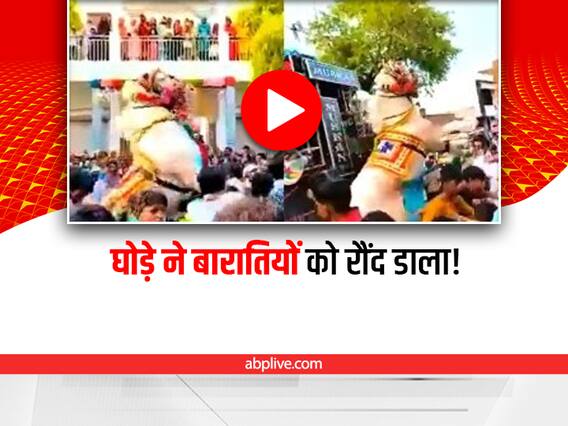 ट्विटर पर साझा किए गए इस वीडियो में बारातियों को तेज संगीत पर थिरकते देखा जा सकता है. तभी अचानक गगनभेदी संगीत की वजह से घोड़ा परेशान हो गया और वहां से भागने के चक्कर में डांस कर रहे बारातियों को रौंद दिया. घटना का पूरा वीडियो वायरल हो गया है.